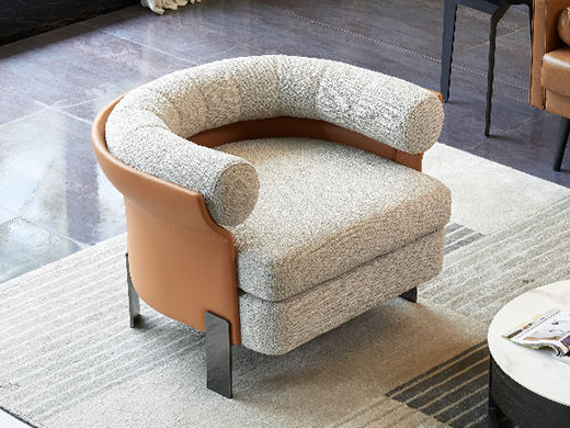 米洛蒂 极简 布艺+碳素钢架+马鞍皮+羽绒填充 图片色 休闲椅
