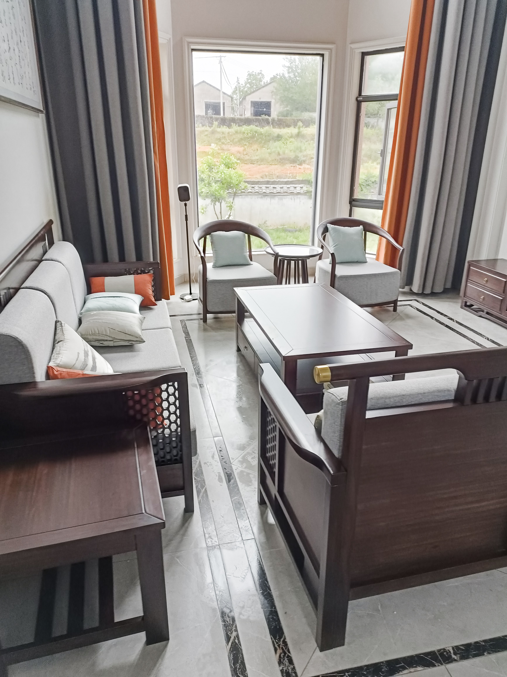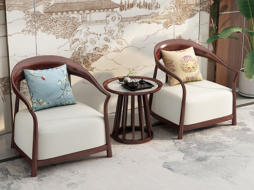 墨槿 新中式 小乌金+实木多层板 圆几岩板 乌金色 休闲椅太师椅3件套