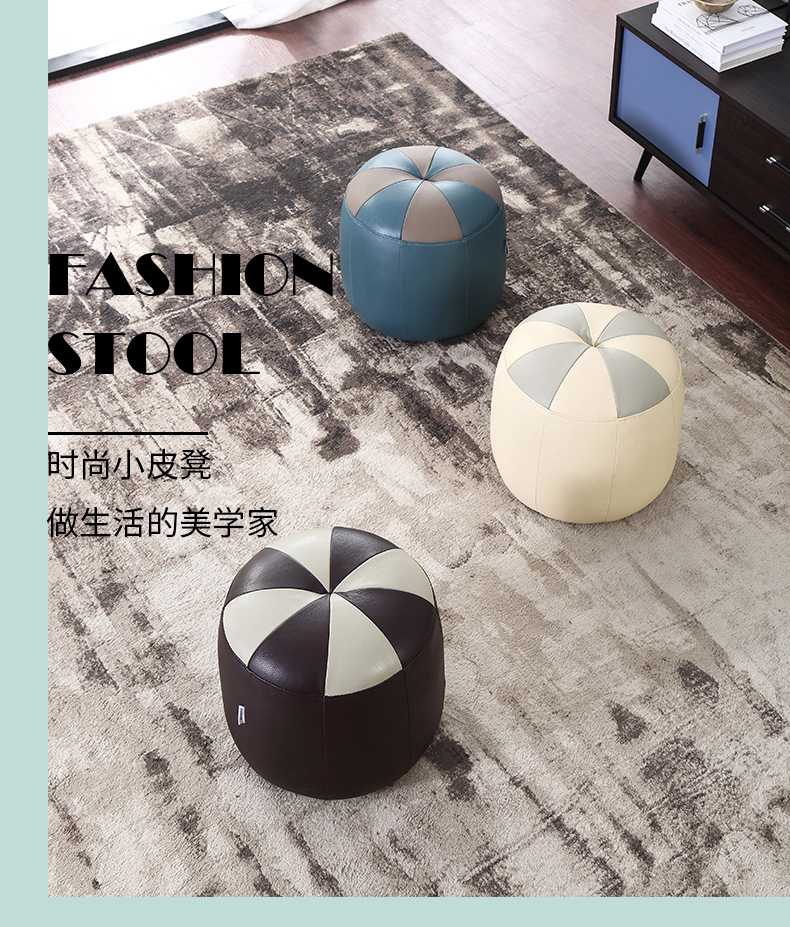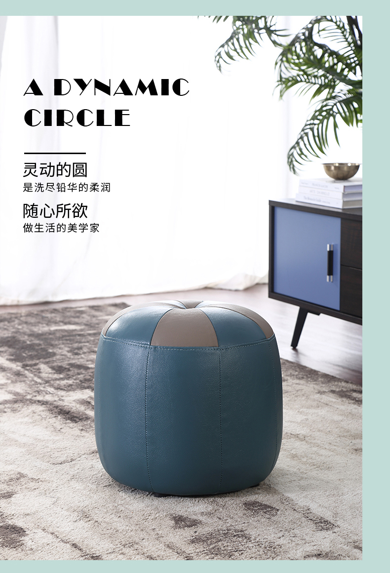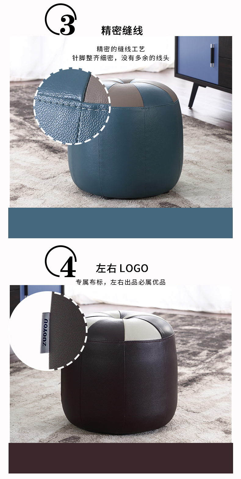 左右家居 现代简约 超纤皮+全实木框架+高回弹海绵 圆凳坐凳