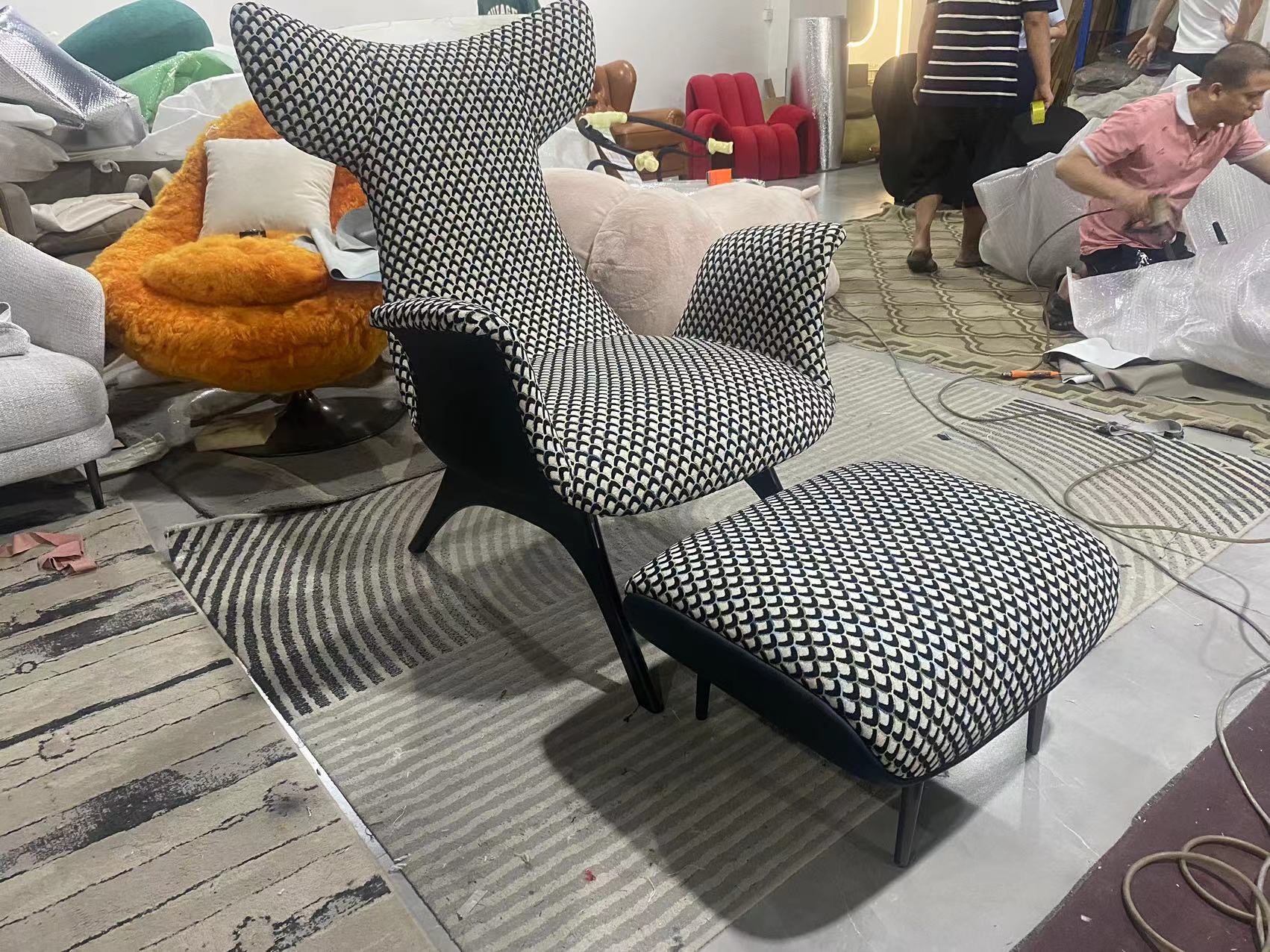 卡芙妮 极简 进口落叶松+多层实木板+高回弹海绵+进口白蜡木脚+蛇形弹簧+魔幻渐变布 图片色 休闲椅¥2575