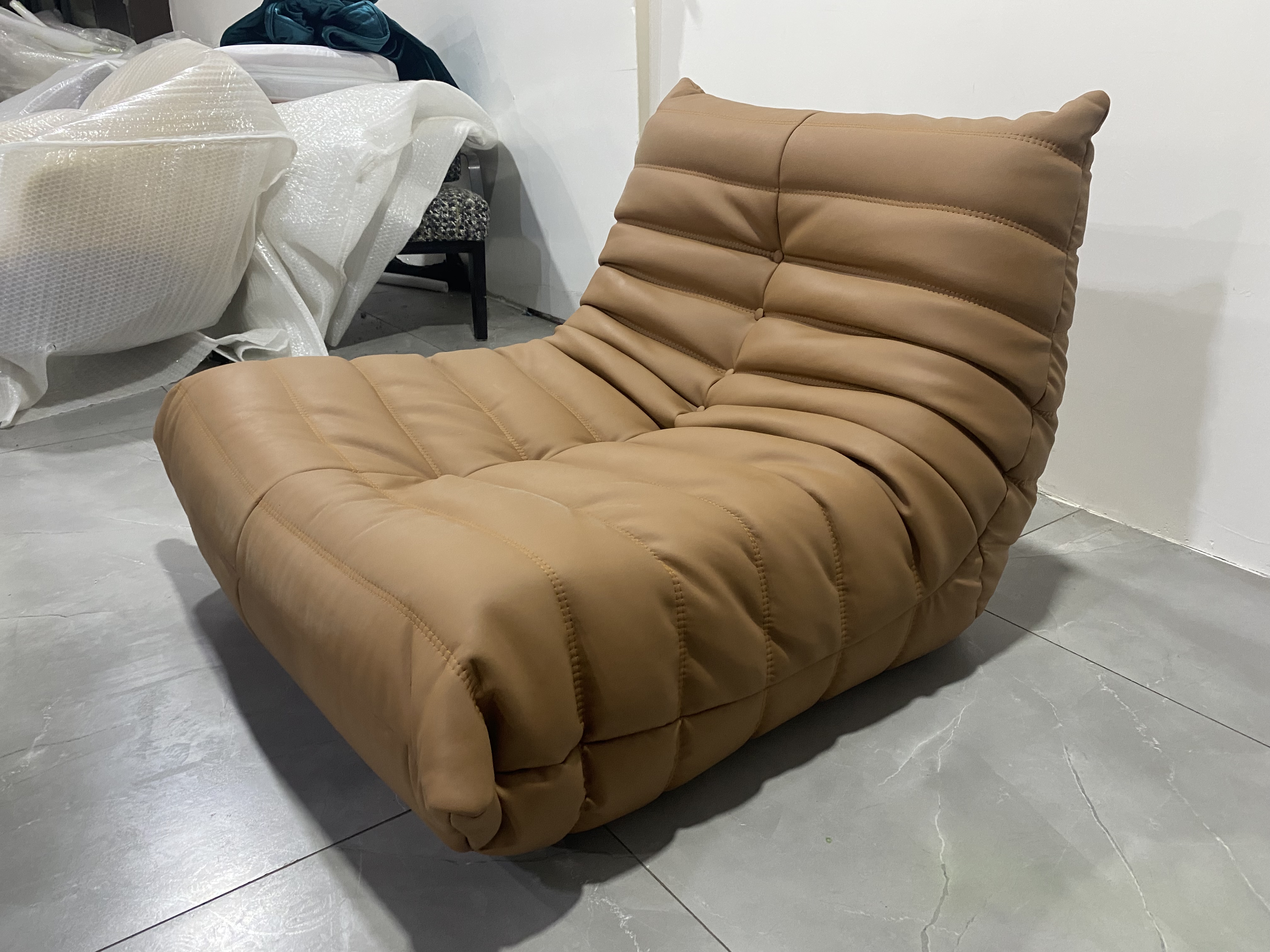 卡芙妮 极简 高回弹定型棉+太空棉+生态真皮 图片色 网红毛毛虫 休闲椅