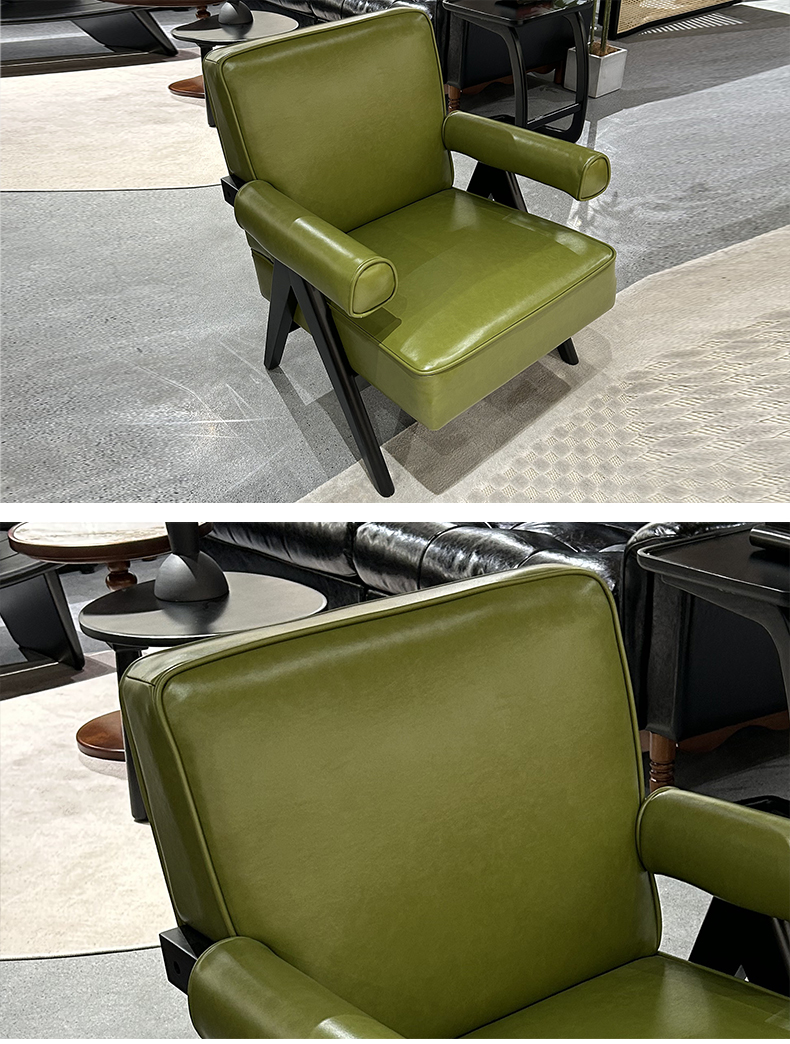 中古·森 网红 中古风 进口白蜡木+多层实木板+高回弹海绵+仿真皮 休闲椅