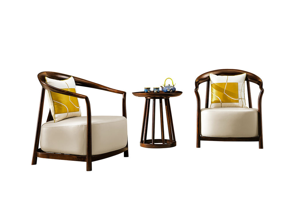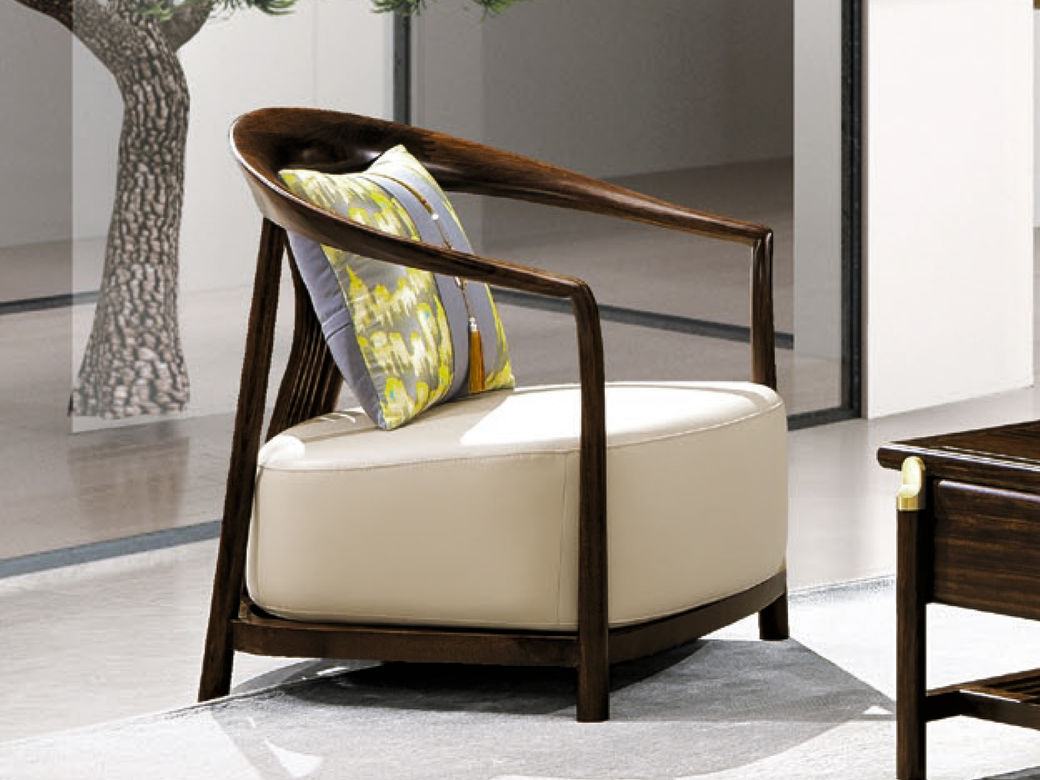 美檀家居 新中式 进口黑檀木+实木内框架+仿真皮+高回弹海绵+多层实木板 黑檀色 休闲椅1把