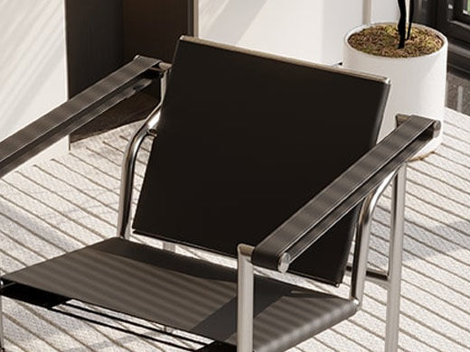 贝斯solo 设计师 网红 极简 马鞍皮(不改色)+201不锈钢25圆管 休闲椅