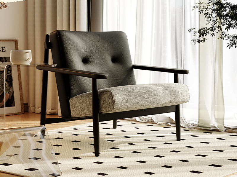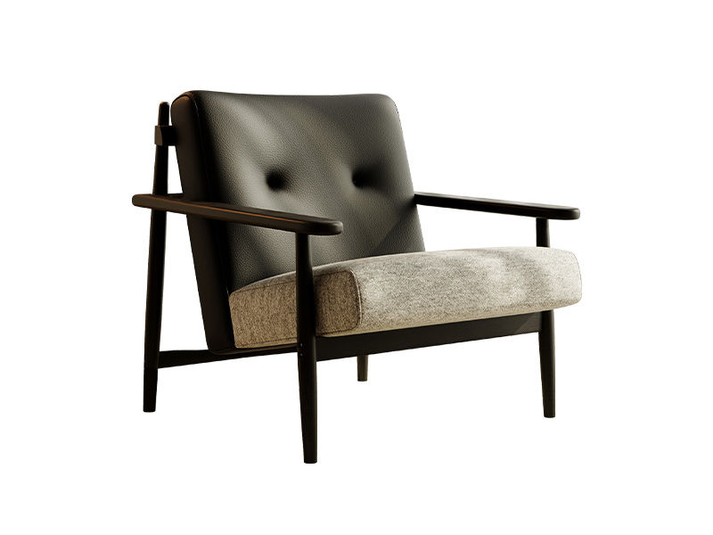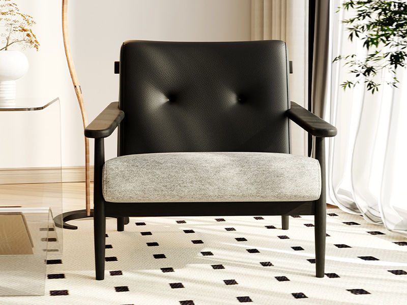 贝斯solo 设计师 网红 极简 白蜡木+生态真皮 休闲椅