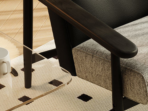 贝斯solo 设计师 网红 极简 实木框架+文冠羊毛卷布艺 休闲椅