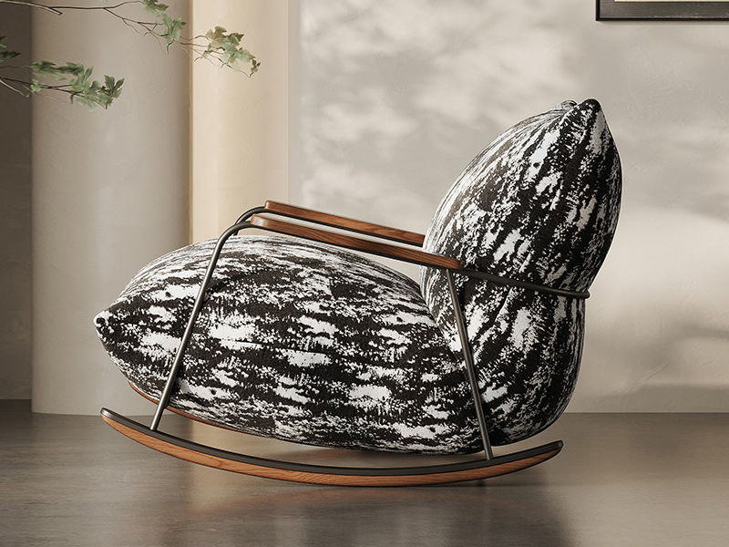 贝斯solo 设计师 网红 极简 水墨画黑白纹路貂绒布料 休闲椅