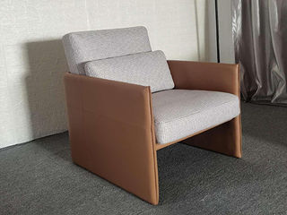 米洛蒂 极简 马鞍皮+布艺+铁架+羽绒填充 图片色 休闲椅