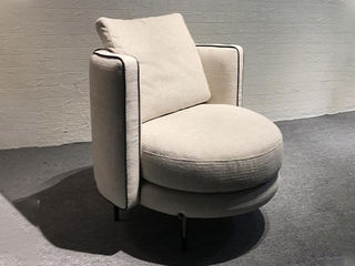 米洛蒂 极简 马鞍皮配布艺+高回弹海绵+转脚 图片色 休闲椅