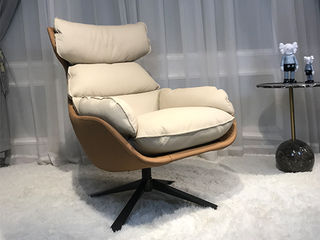 米洛蒂 极简 布+皮+实木框架+高回弹海绵+旋转碳素钢脚 图片色 休闲椅