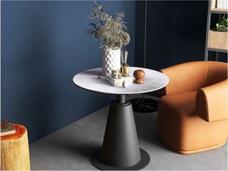 缔造 极简 11mm卡拉亚灰岩板+碳素钢喷涂灰砂色脚 洽谈台洽谈桌