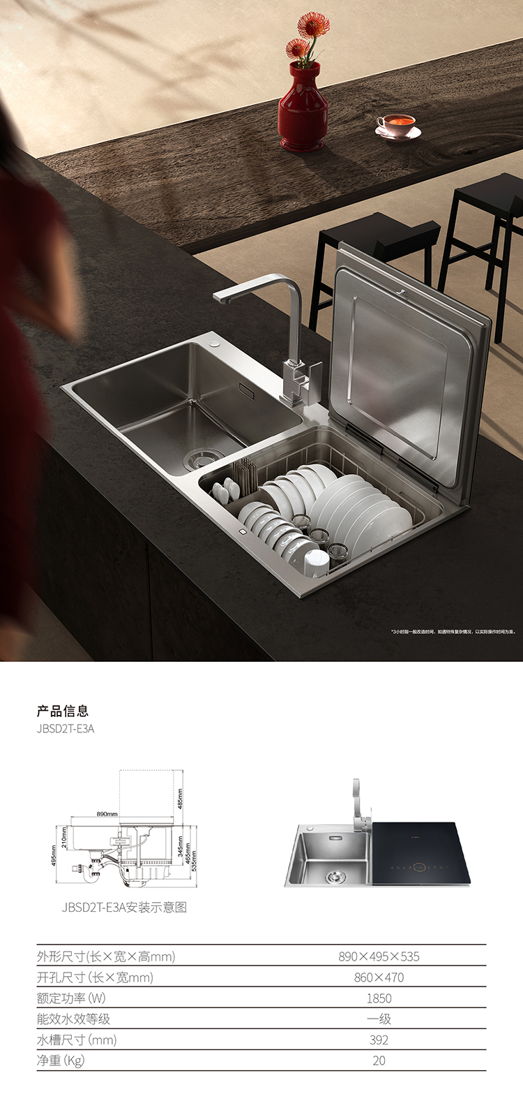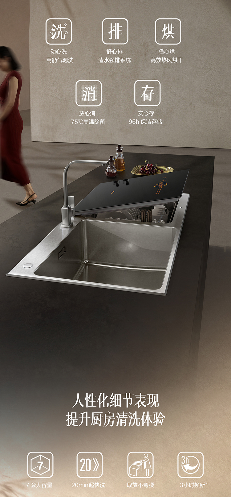 方太 水槽洗碗机 7套容积(面向 洗碗机在左边,水槽在右边)