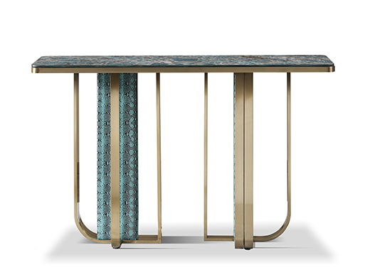 拜洛迪 轻奢 拉丝香槟金不锈钢+奢石岩板 绿色 1.38米玄关桌案几
