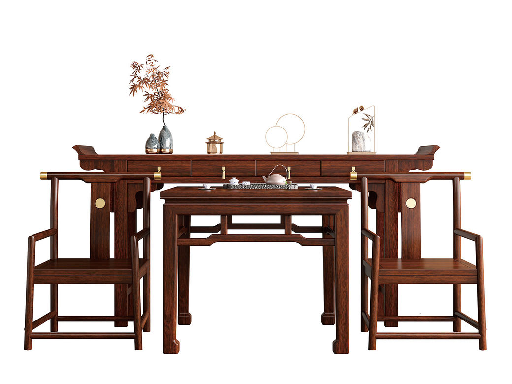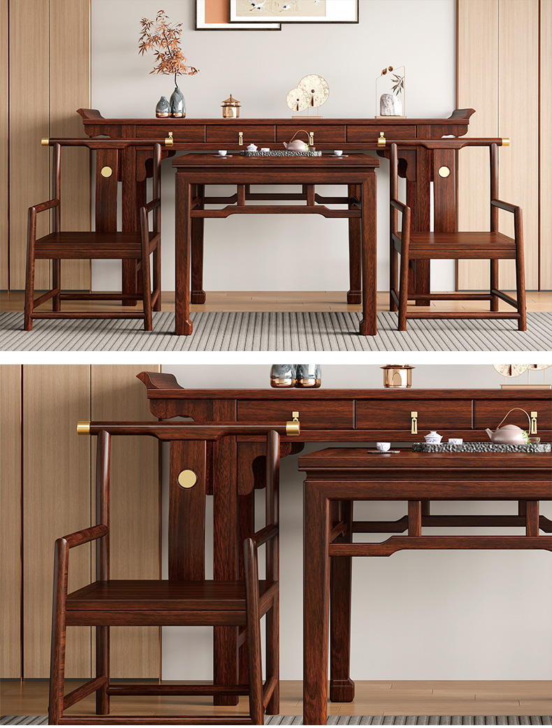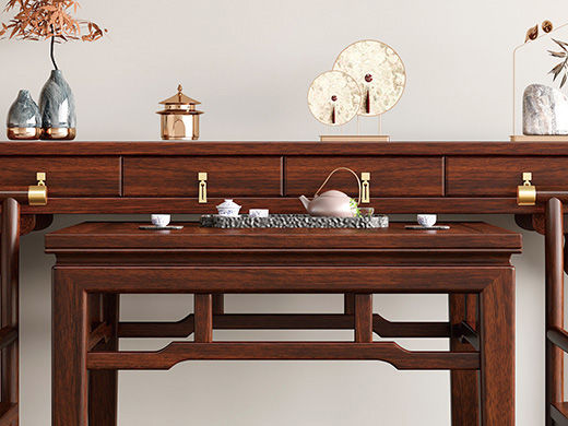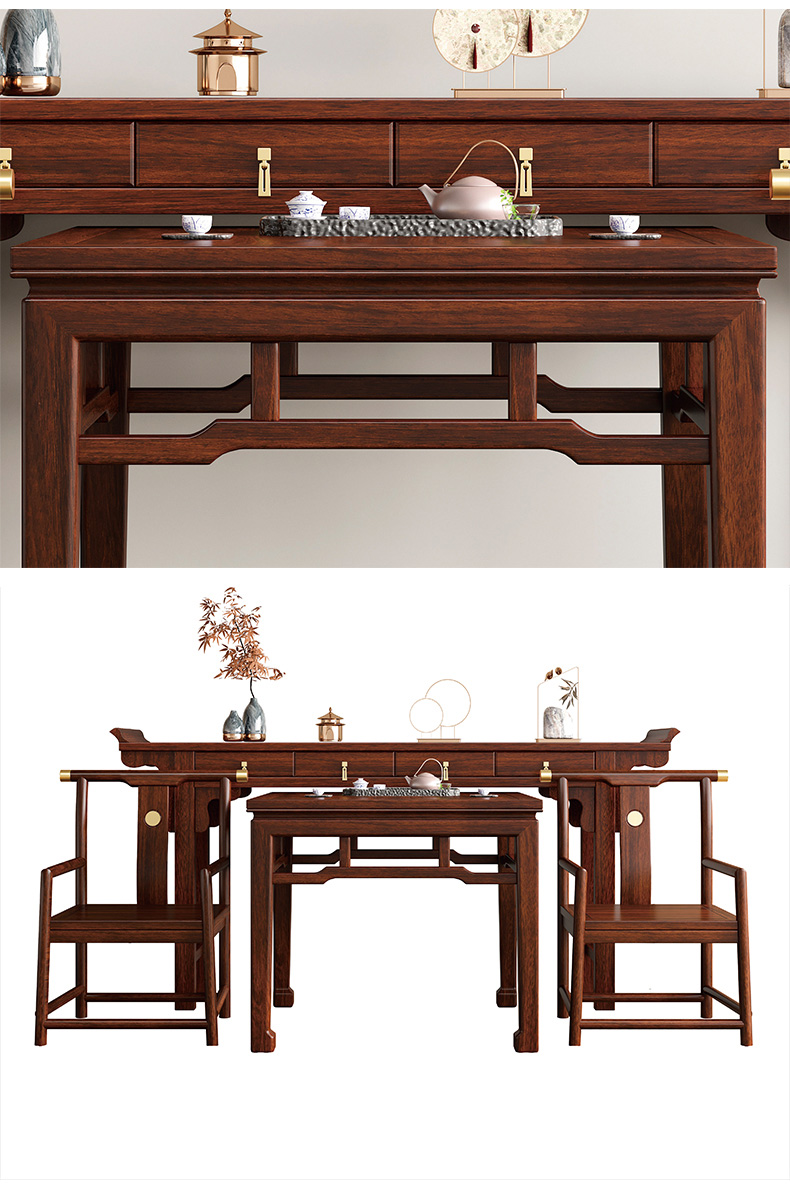 宝瑞·檀风 新中式 印尼金花梨木框架+多层实木板贴皮+电镀五金 紫檀色 1.06米 中堂 供台 八仙桌(不含神台和椅子)
