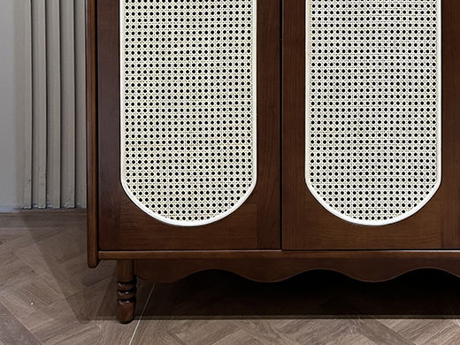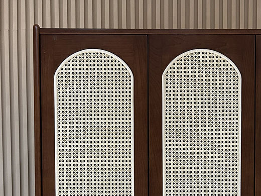 中古·森 网红 中古风 进口樱桃木+多层实木板+编织藤 四门衣柜
