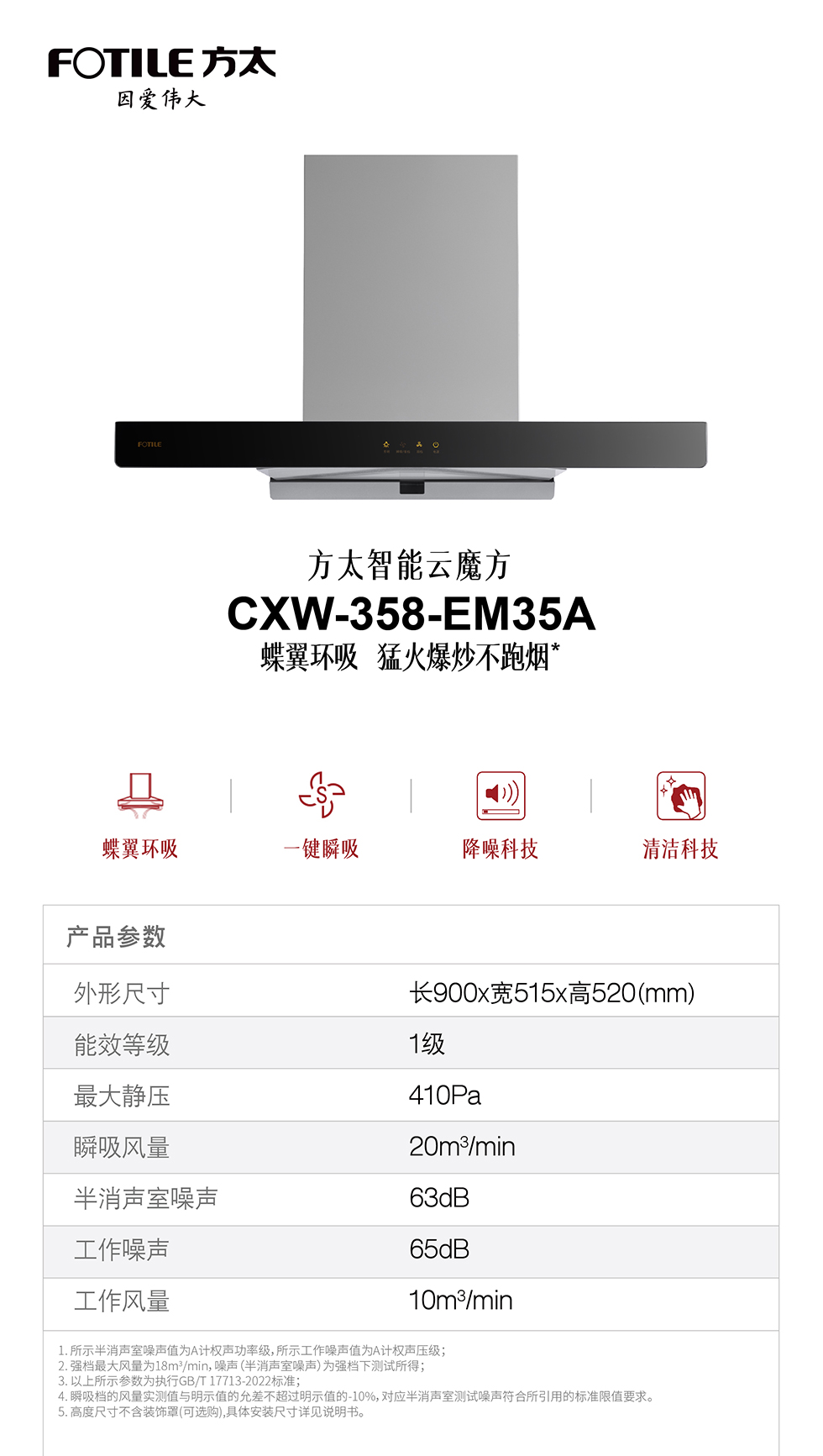 方太 CXW-358-EM35A 云魔方 蝶翼环吸 一键瞬吸 猛火爆炒不排烟 吸油烟机