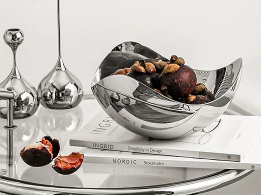 梵饰琪 三角果盘(大)+银色水滴烛台(矮)+银色水滴烛台(高)+仿真山竹 摆件 运费到付