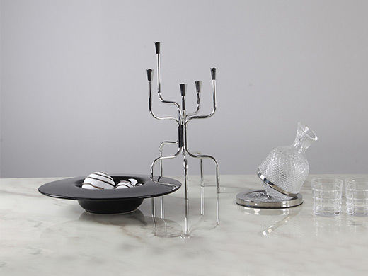 梵饰琪 川楝果盘+肌理球(一对)+六头烛台+波纹醒酒器+方格酒杯 摆件 运费到付