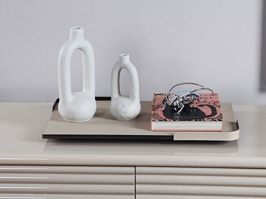 梵饰琪 极简 卡其米托盘+竹意花瓶(大)+竹意花瓶(小)+长角虫摆件+硬壳仿真书-黑猫 托盘组合-17 运费到付