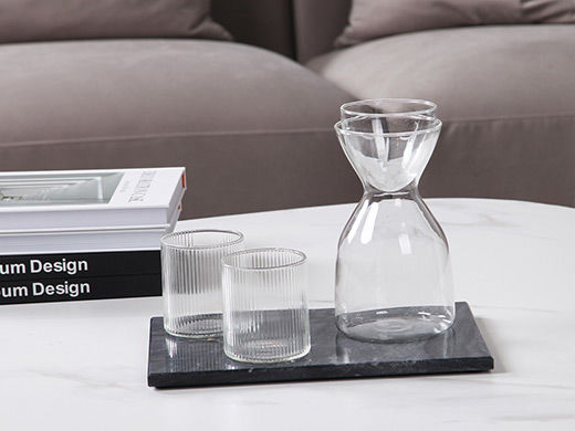 梵饰琪 极简 大理石托盘(黑)+收腰凉水壶(透明)+筋纹水杯 托盘组合-25 运费到付