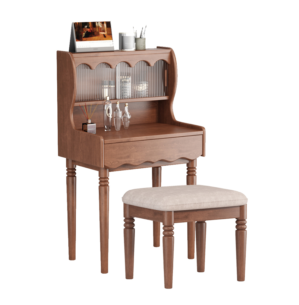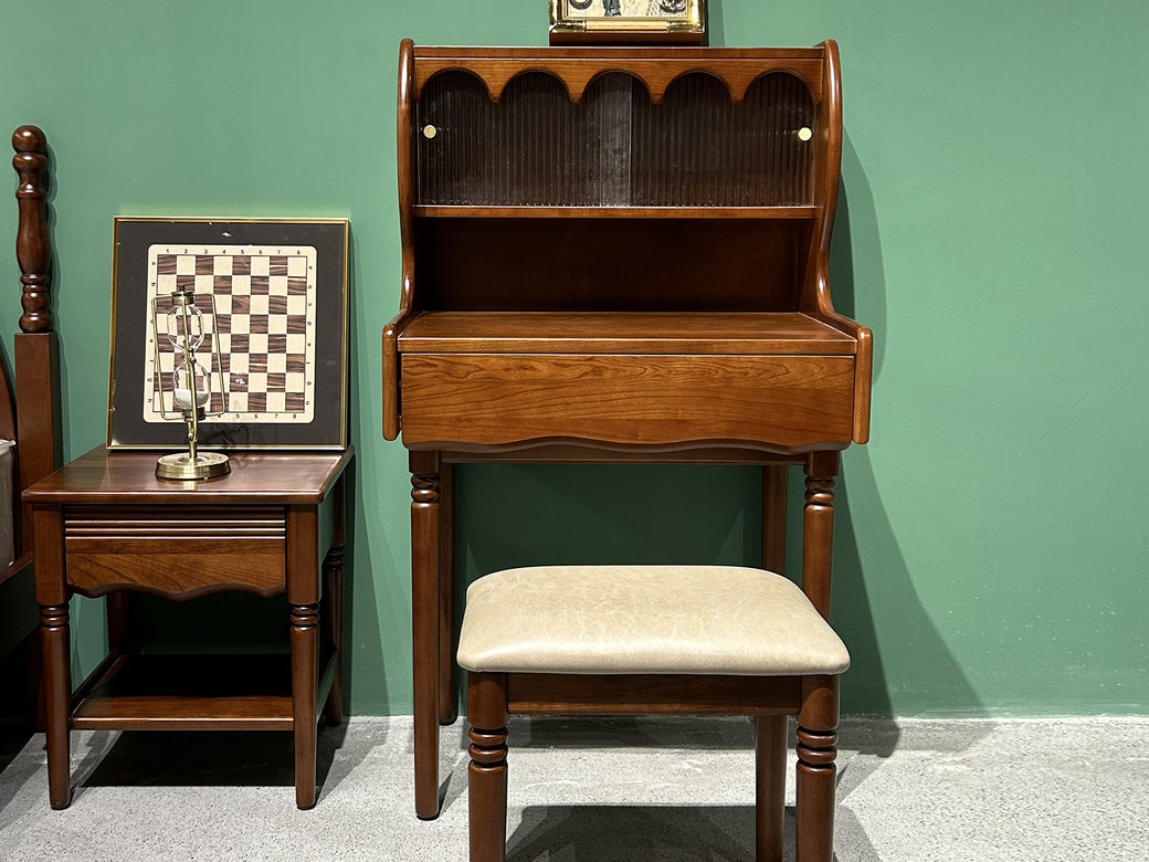 中古·森 网红 中古风 进口樱桃木+多层实木板+实木导轨+工艺玻璃 妆台