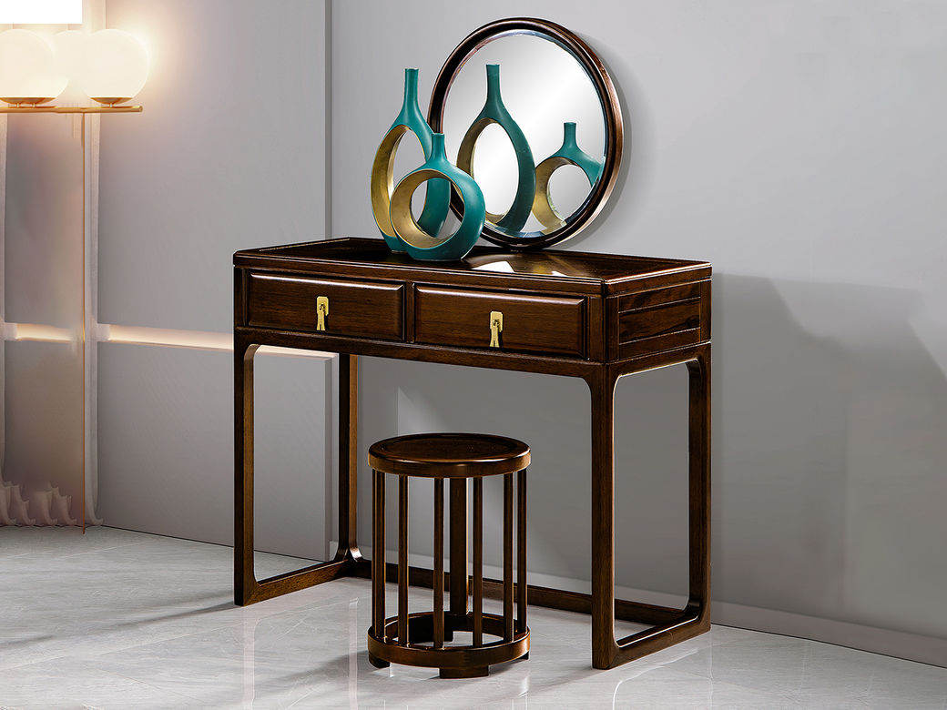 美檀家居 新中式 进口黑檀木+多层实木板+静音导轨+电镀五金+妆镜(不含妆凳) 黑檀色 妆台