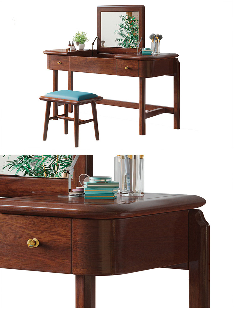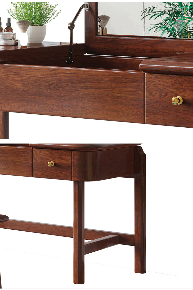 宝瑞·檀风 新中式 印尼金花梨木框架+多层实木板贴皮+镜子(含妆凳) 紫檀色 梳妆台