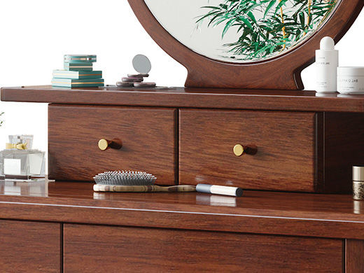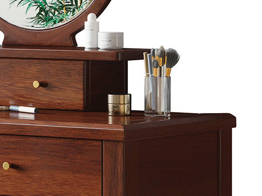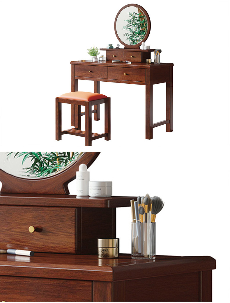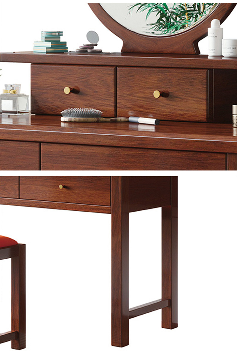 宝瑞·檀风 新中式 印尼金花梨木框架+多层实木板贴皮+镜子(含妆凳) 紫檀色 梳妆台