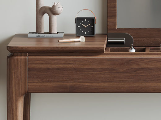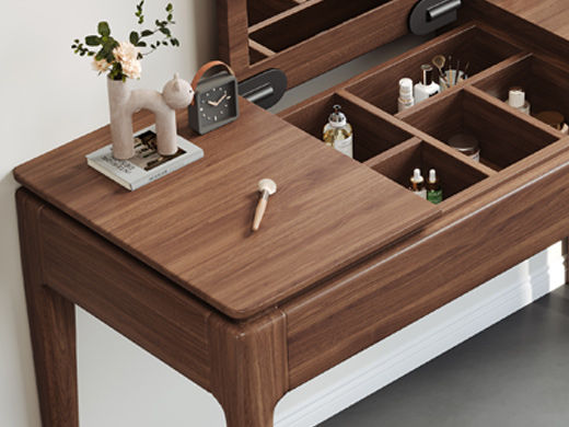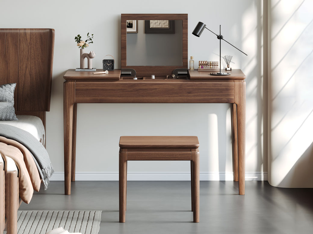墨云阁 中古风 南美胡桃木+多层实木板 胡桃色 妆台+妆镜+妆凳