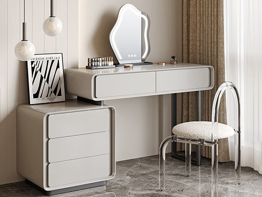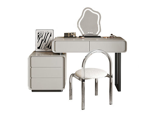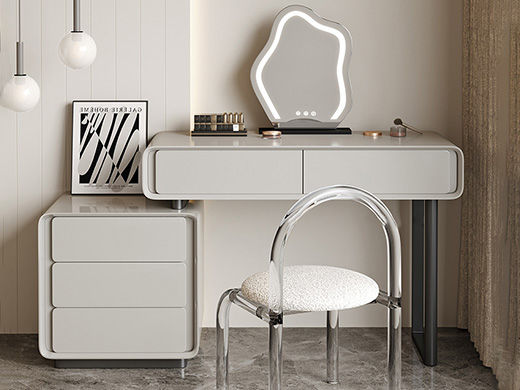 维利品尚 环保烤漆+多层实木框架+实木抽屉+灰不锈钢+云朵触屏妆镜+哑克力妆凳妆凳 1米妆台+边柜+镜子+凳子