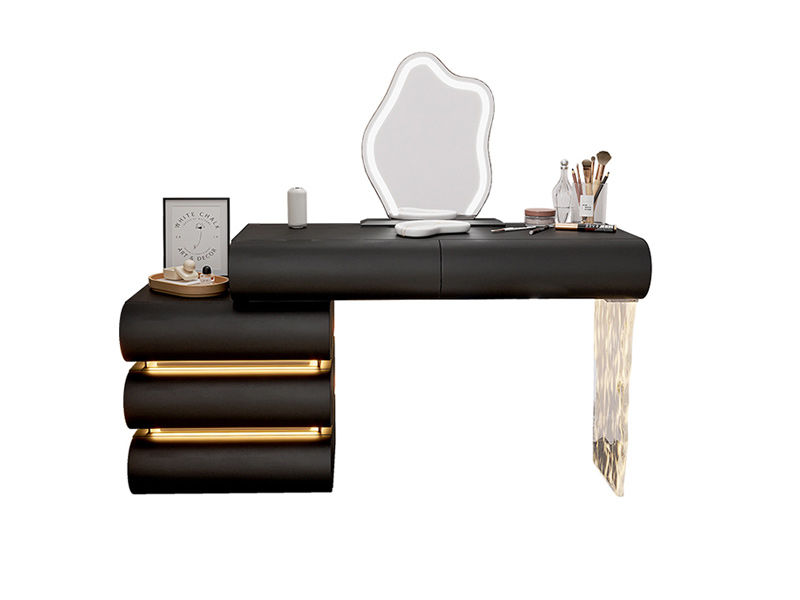 洛萨 极简 柜体全松木+猫抓皮+550高亚克力脚 伸缩梳妆台