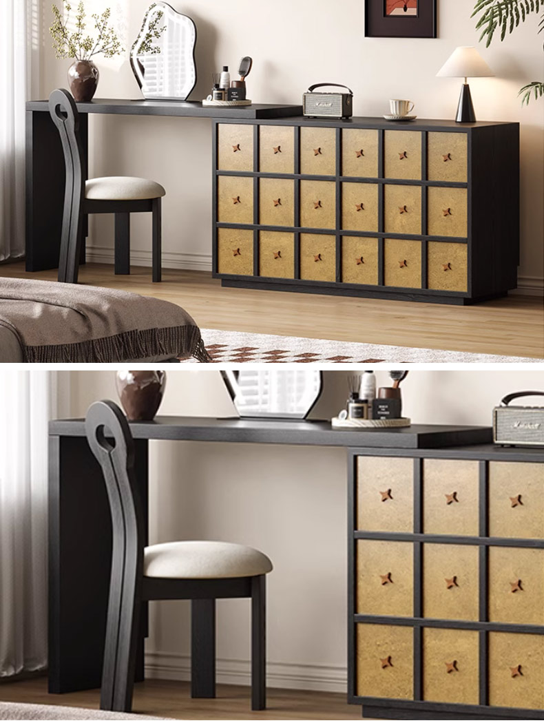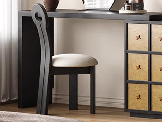 墨云阁 中古风 南美胡桃木+多层实木板 胡桃色 妆台+妆镜+妆凳¥1247