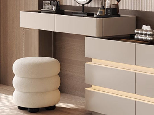 维利品尚 中古风 多层实木板+贴木纹饰面+落叶松+婴儿绒妆凳 梳妆台¥4034