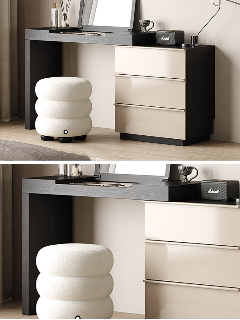 维利品尚 中古风 多层实木板+贴木纹饰面+落叶松+婴儿绒妆凳 梳妆台¥4034