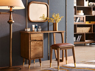 乐芙兰 北欧 进口白蜡木+多层实木板+静音导轨+电镀五金+玻璃 胡桃色 妆台