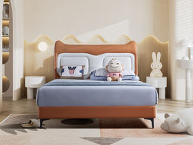 快乐童眠 儿童床 硅胶去污皮+钢木排骨架+进口俄罗斯松木框架+高回弹海绵 橙色 1.5M软床