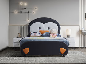 快乐童眠 儿童床 硅胶去污皮+钢木排骨架+进口俄罗斯松木框架+高回弹海绵 黑白色 1.5M软床