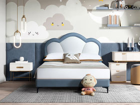 快乐童眠 儿童床 硅胶去污皮骨+进口俄罗斯松木框架+高回弹海绵 浅蓝白色 1.5M软床