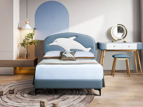 快乐童眠 儿童床 硅胶去污皮+钢木排骨架+进口俄罗斯松木框架+高回弹海绵 粉蓝色 1.5M软床