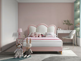 快乐童眠 儿童床 硅胶去污皮+钢木排骨架+进口俄罗斯松木框架+高回弹海绵 粉白色 1.5M软床