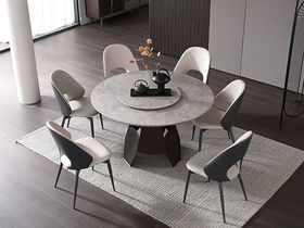 梵歌 现代简约 E1环保中纤板 环保水性漆 烟熏木皮 高密度三胺板抽屉+三节缓冲导轨 抽面3MM岩板+15MM人造大理石面 碳素钢五金脚 烟熏色 1.35米圆餐桌