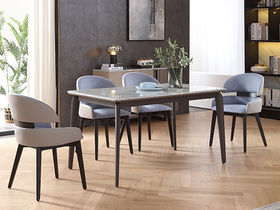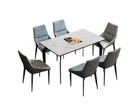 梵歌 现代简约 E1环保中纤板+环保水性漆 6MM岩板 哑光大花白 碳素钢五金脚 浅灰 1.35米餐桌
