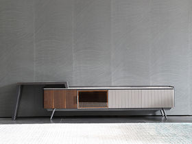 梵歌 现代简约 E1环保中纤板 环保水性漆 烟熏木皮 高密度三胺板抽屉+三节缓冲导轨 地柜抽面3MM岩板+15MM人造大理石面 碳素钢五金脚 烟熏色 电视柜