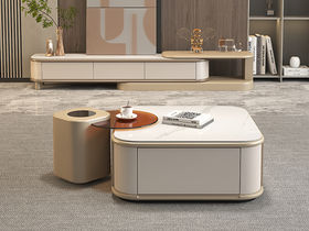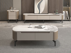 非凡工艺 现代简约 6厘岩板 板木结合 喷涂烤漆 0.9米组合茶几