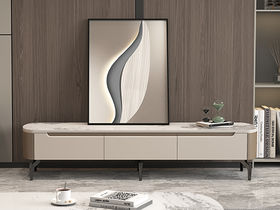 B系优选 极简 6厘岩板 板木结合 喷涂烤漆 脚:五金喷涂(亮光香奈儿) 2米电视柜(未开电源孔)