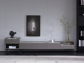 非凡工艺 现代简约 6厘岩板 板木结合 喷涂烤漆 脚:五金(哑光金属漆浮雕迈卡灰)2米电视柜