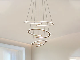 宏光灯饰 极简 冷扎钢板+铝材+亚克力 LED 120w 天猫精灵 拉丝氧化浅香槟金色 吊灯
