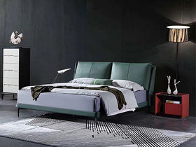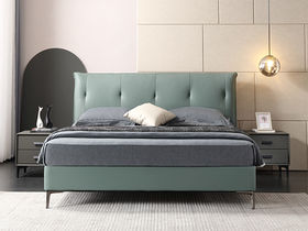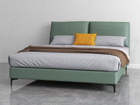 e家优选 极简 接触面靠包真皮 松木 实木多层板 九孔纤维棉 绿色 1.8米皮床