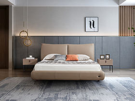 e家优选 极简 接触面靠包真皮 松木 实木多层板 米黄色 1.8米皮床