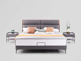 e家优选 现代简约 接触面头层牛皮 松木 实木多层板 九孔纤维棉 咖灰色 1.8米皮床